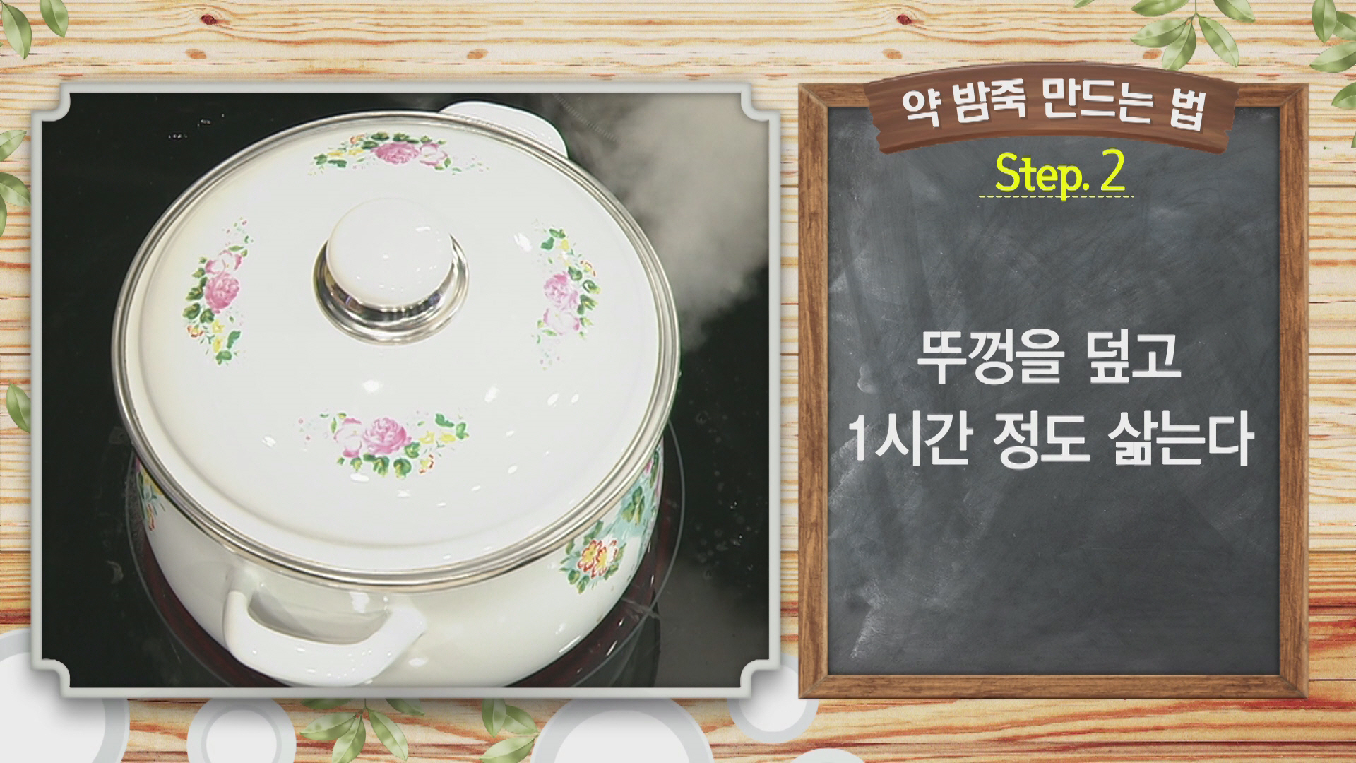 파뿌리, 생강, 도라지, 더덕, 말린밤1컵, 약수 1.5리터, 늙은호박300g, 팥1컵, 대추1컵, 불린찹쌀 반 컵, 조청 1큰술