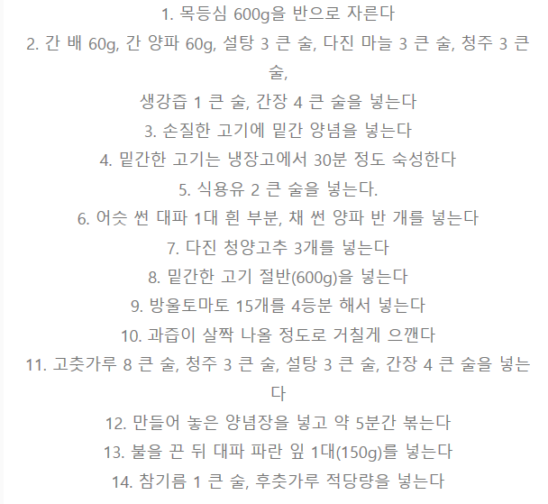 6. 밑간한 목등심 반 600g을 넣는다.