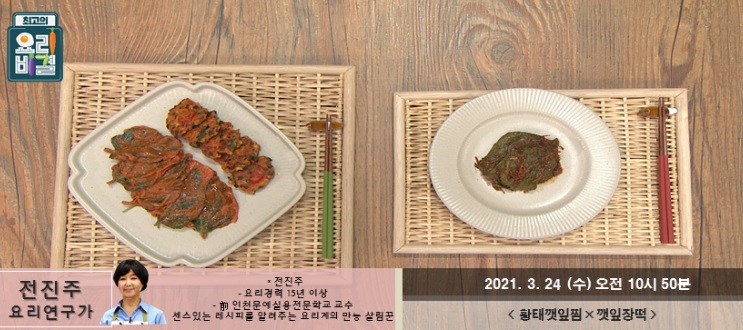 전진주씨가 공개하는 요리비결의 황태깻잎찜과 깻잎장떡 레시피를 알아보겠습니다.