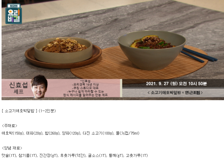 요리비결 신효섭의 소고기애호박덮밥과 연근조림 레시피