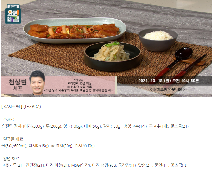요리비결 천상현의 갈치조림과 무나물 레시피