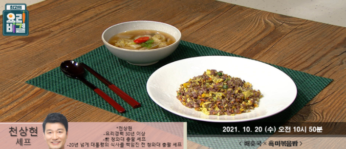 | 요리비결 천상현의 소고기송이덮밥과 김쪽파무 레시피 (0) | 2021.10.18 |