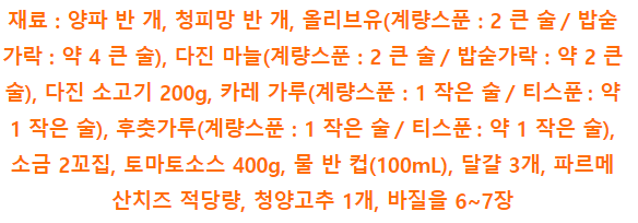 (파르메산치즈.청양고추. 바질은 취향에 맞게 조절)