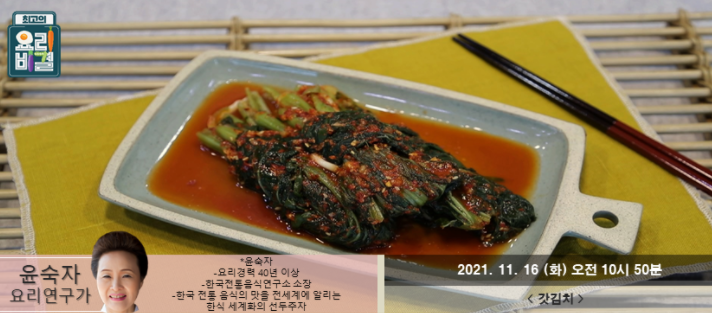 | 요리비결 윤숙자의 총각김치 레시피 (0) | 2021.11.14 |