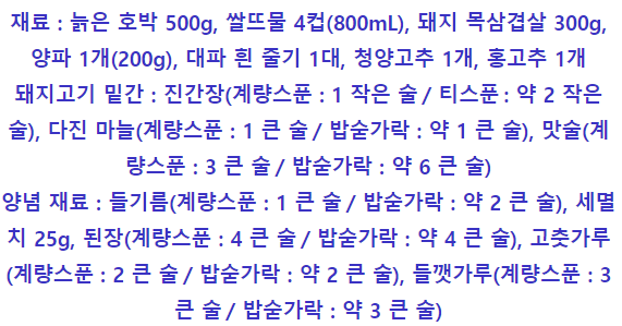 알토란 이보은 요리연구가 늙은호박강된장 레시피 초겨울 자연 밥상 362회 레시피를 알아보겠습니다. 만드는 방법 1. 껍질.씨 제거한 늙은 호박 500g을 4~5cm 길이로 썬다. 2. 냄비에 쌀뜨물 4