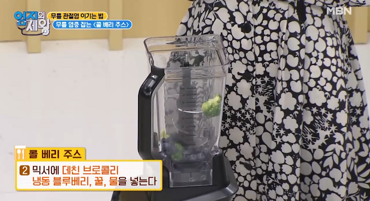 데친 브로콜리 45g, 냉동 블루베리 50g, 물 120ml, 꿀1티스푼