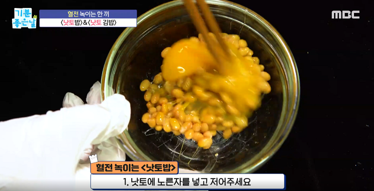 1. 낫토에 노른자를 넣고 저어준다.
