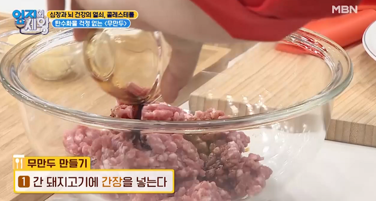 간 돼지고기400g, 진간장 2t, 멸치액젓 1t, 다진마늘 1t, 생강가루 1/2t, 후춧가루약간