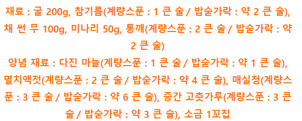 (굴은 소금 물에 가볍게 헹궈서 준비)