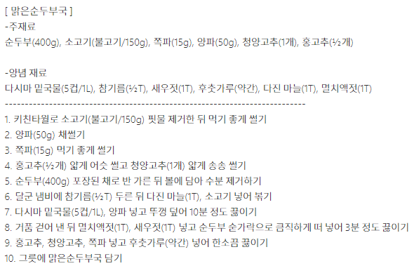 레시피를 알아보겠습니다.
