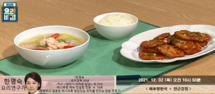 최고의 요리비결 한명숙의 배추명란국과 연근강정 레시피