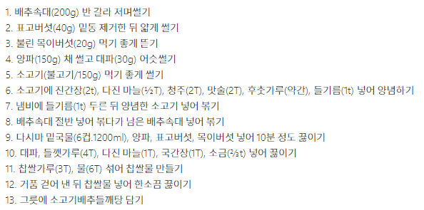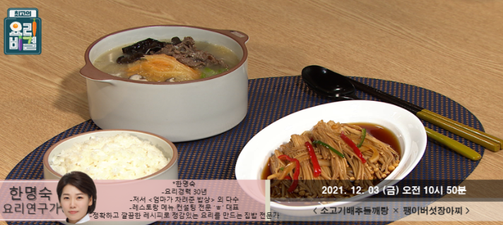 한명숙의 소고기배추들깨탕과 팽이버섯장아찌 레시피