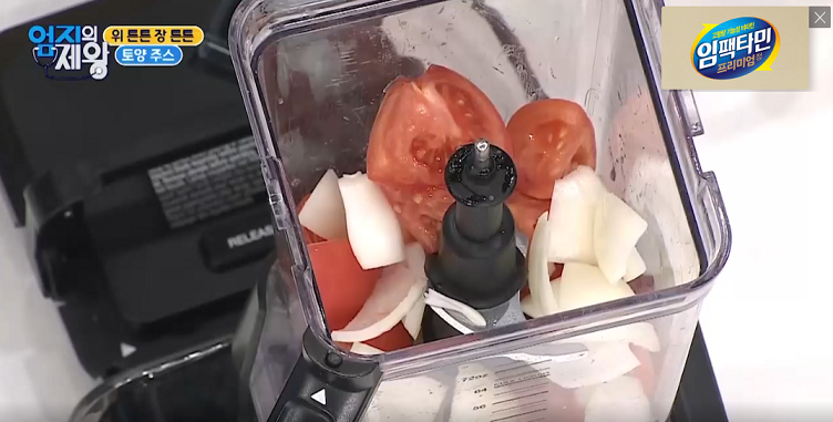 1. 양파 1 : 토마토 2의 비율로 믹서기에 넣는다.