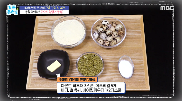 아몬드파우더 3스푼, 메추리알 5개, 버터, 호박씨, 베이킹파우더1/2티스푼