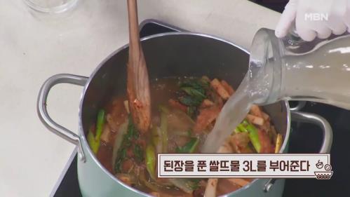13.된장을 푼 쌀뜨물 3리터를 부어준다.
