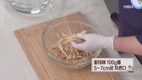 1. 황태채 100g을 5~7cm로 자른다.