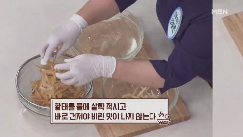 3. 황태를 물에 살짝 적시고 바로 건져야 비린 맛이 나지 않는다.