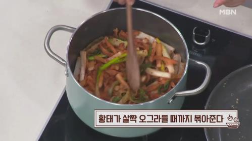 11. 황태가 살짝 오그라들 때까지 볶아준다.