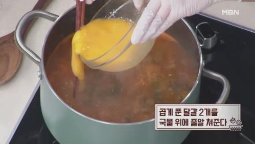 15. 곱게 푼 달걀 2개를 국물 위에 줄알 쳐준다.