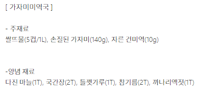 1. 자른 건미역 10g은 찬물에 10분 정도 불리기