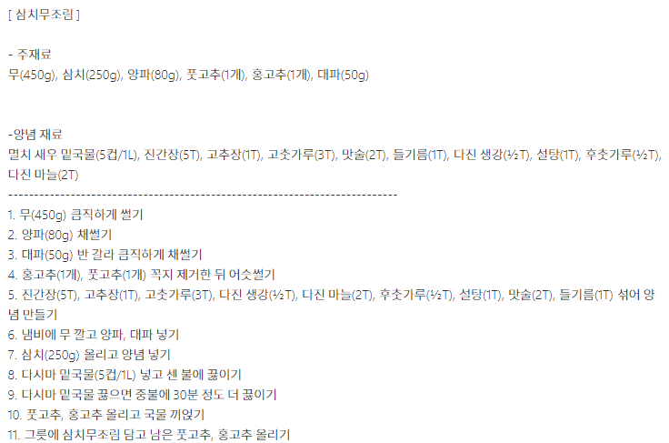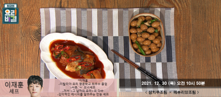 | 최고의 요리비결 이재훈의 매운소고기뭇국과 배추겉절이 레시피 (0) | 2021.12.27 |