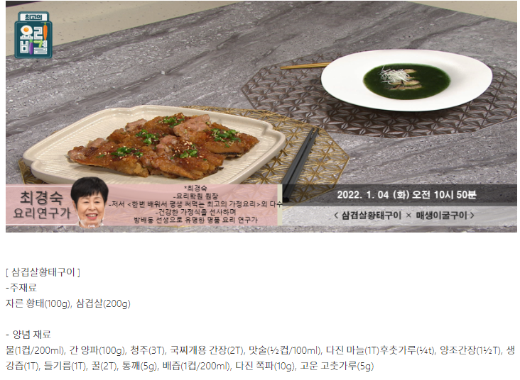 최고의 요리비결 최경숙의 삼겹살황태구이와 매생이굴구이 레시피