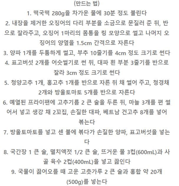 알토란 신효섭셰프 오징어짬뽕떡국 떡뻥 레시피