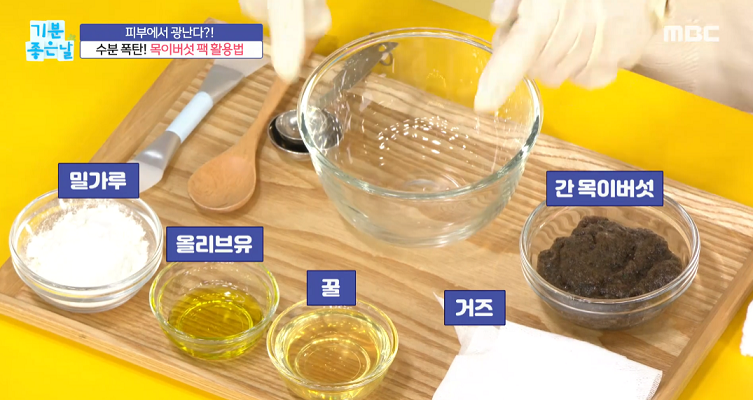 밀가루, 올리브유, 꿀, 거즈, 간 목이버섯