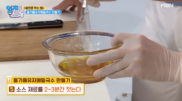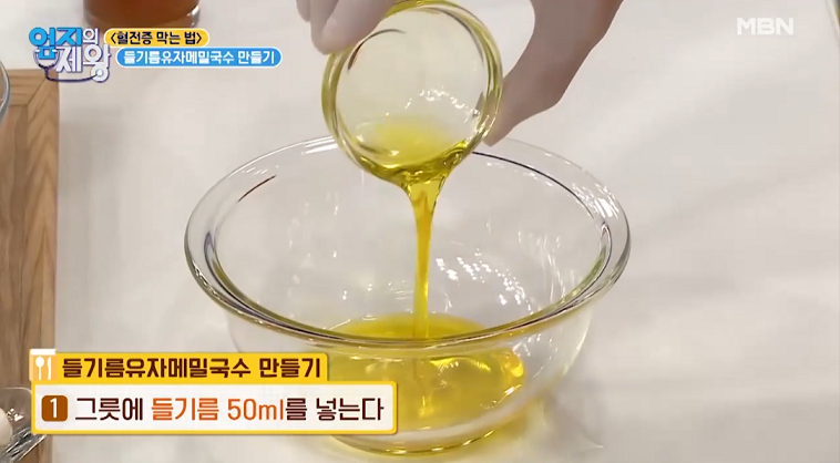 1. 그릇에 들기름 50ml를 넣는다.