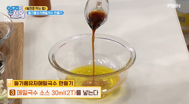 3. 메밀국수 소스 30ml 2t를 넣는다.