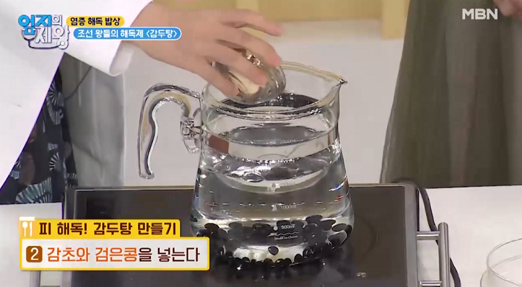 2. 감초와 검은콩을 넣는다.