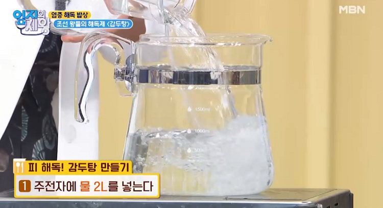 1. 주전자에 물 2리터를 넣는다.