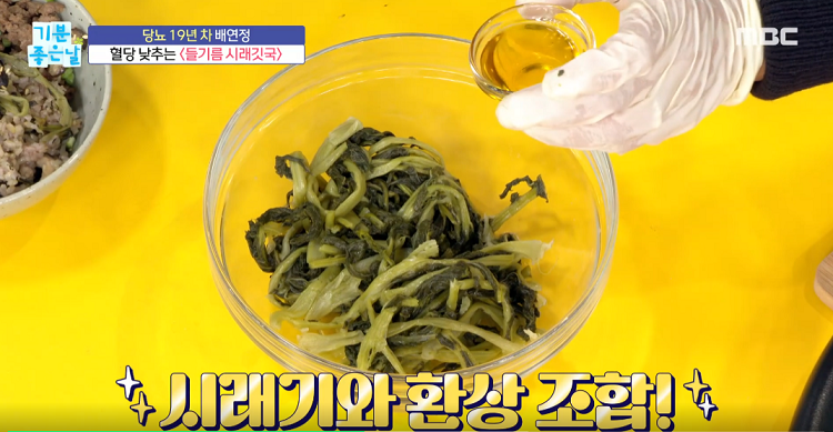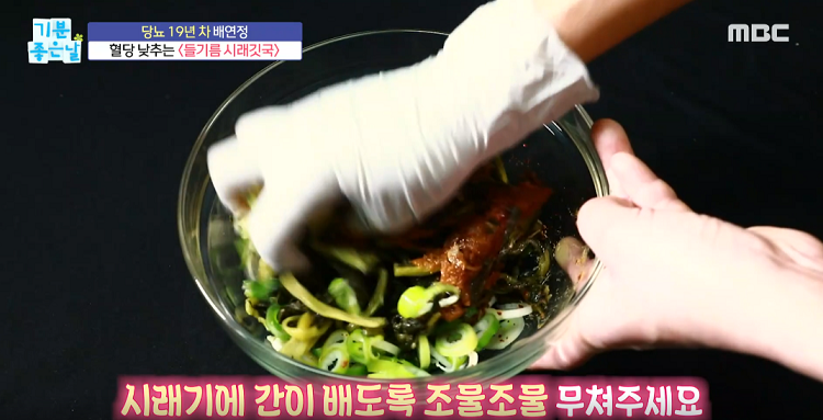 2. 시래기에 들기름을 적당량 넣는다.