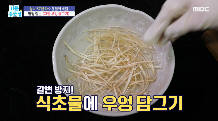 ** 위에 채 썬 우엉은 미리 썰어 놓았을 때 갈변방지 **