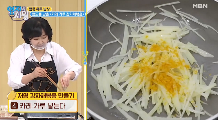 엄지의 제왕 채소수프 카레가루 감자채볶음 미역쌈 레시피