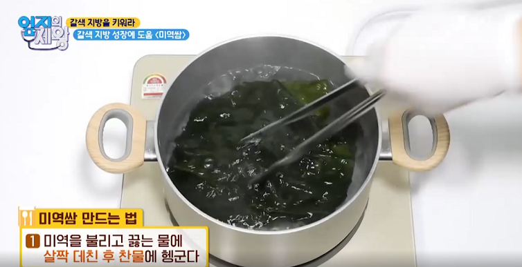 1. 미역을 불리고 끓는 물에 살짝 데친 후 찬물에 헹군다.