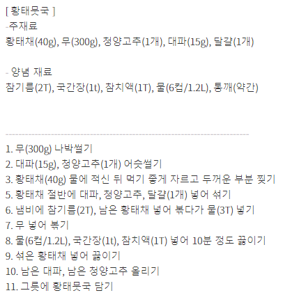 레시피를 알아보겠습니다.