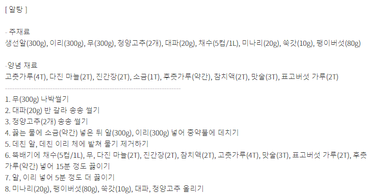 | 최고의 요리비결 민요한의 달볶음탕과 달걀찜 레시피 (0) | 2022.01.22 |