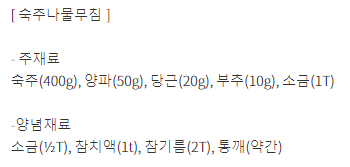 5. 숙주에 참기름 2t, 참치액 1t, 소금 1/2t를 넣어 양념한다.