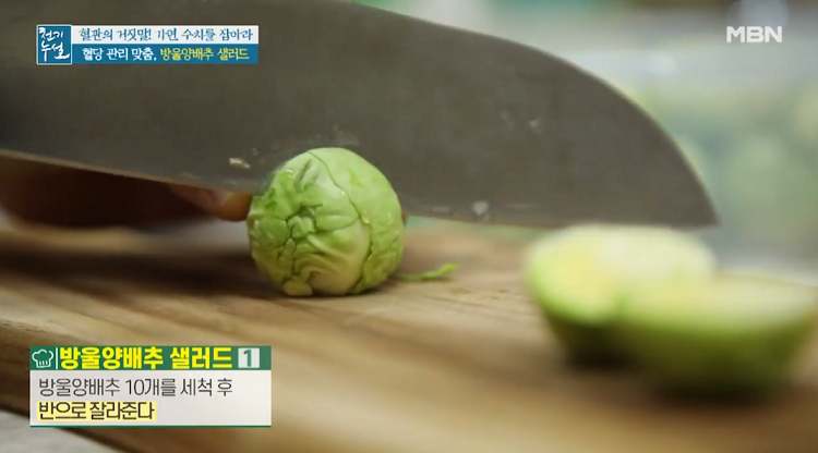 1. 방울양배추 10개를 세척 후 반으로 갈라준다.