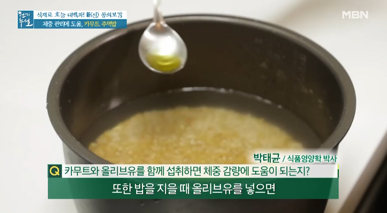 3. 밥을 지을 때 올리브유를 약간 넣어준다.
