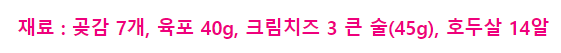 3. 곶감 1개 당 크림치즈 1큰 술, 호두 2알, 채 썬 육포를 넣는다.