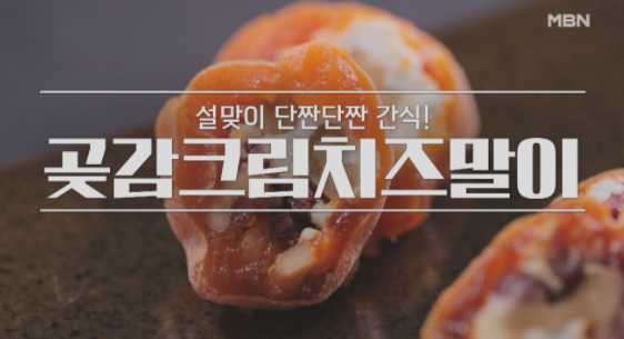 1. 곶감은 모양을 납작하게 누르고 꼭지 부분을 칼로 잘라 제거한다. 곶감 한 쪽을 잘라 펼쳐서 씨를 빼준다.