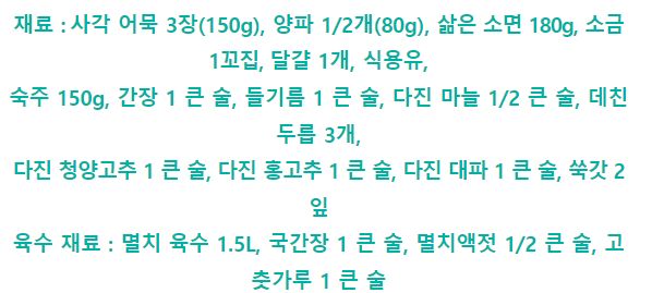 레시피가 어떻게 되는지 알아보겠습니다.