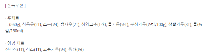 1. 채 썬 무 560g에 소금 1/2t를 넣어 절인다.