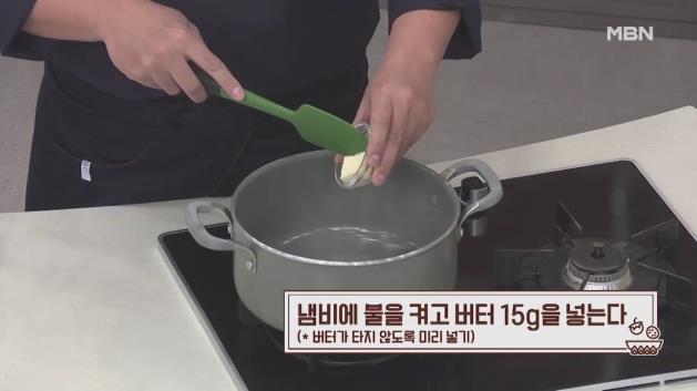 2. 냄비에 불을 켜고 버터 15g을 넣는다.
