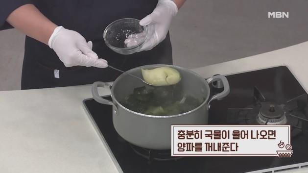8. 충분히 국물이 울어 나오면 양파를 꺼내준다.