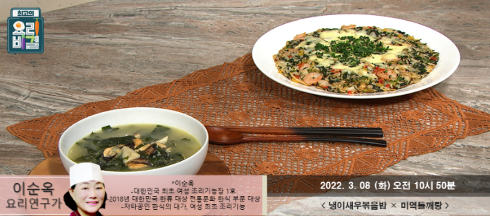 이순옥의 냉이새우볶음밥과 미역들깨탕 레시피