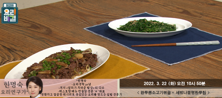 한명숙의 완두콩소고기볶음과 세발나물명란무침 레시피