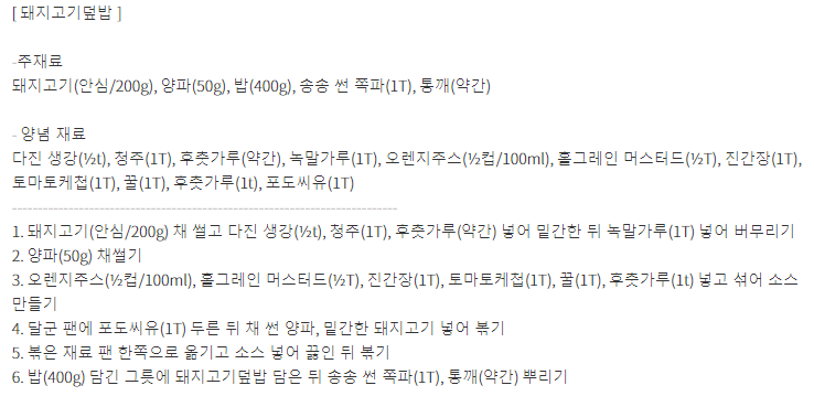 레시피가 어떻게 되는지 알아보겠습니다.